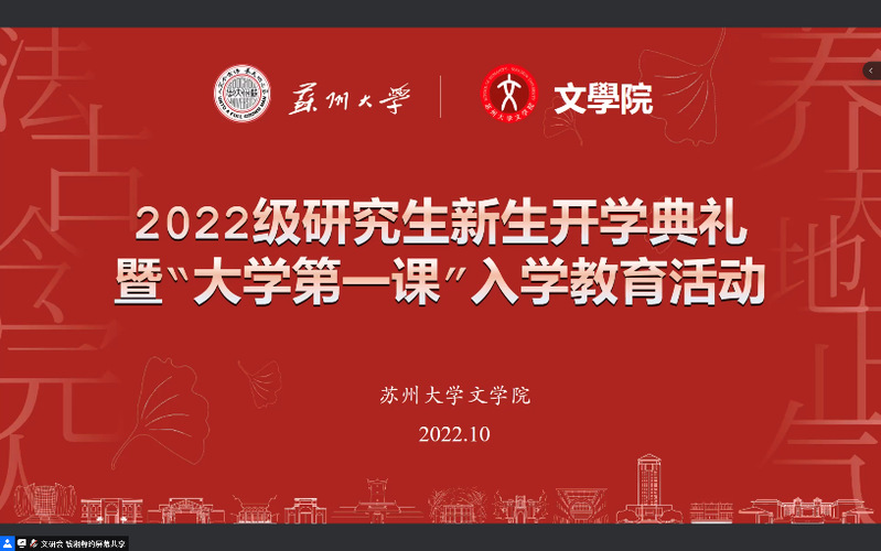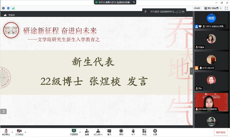 10月5日晚18时30分,楼凤网 2022级研究生新生开学典礼暨“大学第一课”入学教育活动于线上正式举行。楼凤网 院长曹炜教授、党委书记宋清华老师,党委副书记阴浩老师,副院长周生杰老师,博士生导师张蕾教授,以及部分教师和研究生辅导员出席本次入学教育。活动由楼凤网 研究生会主席团成员张心雨主持。