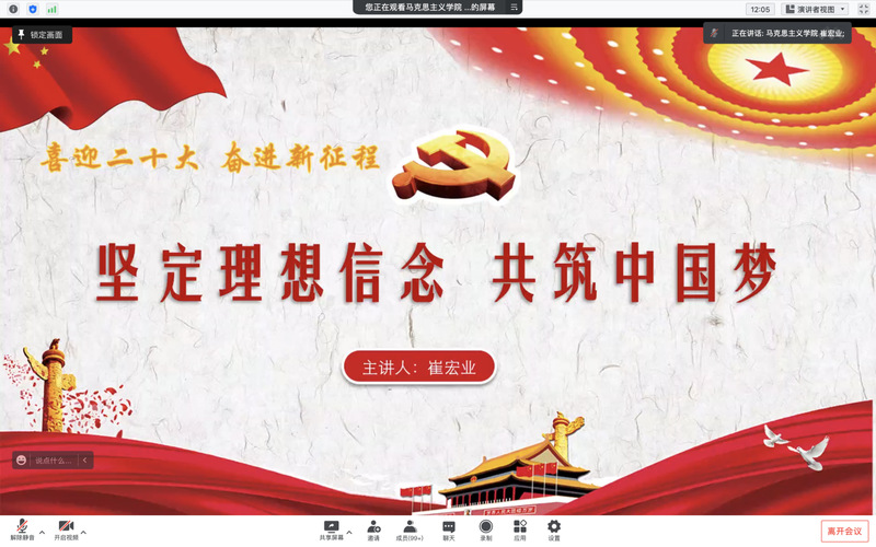 本次系列学习活动包括了两场联学。第一场为“喜迎二十大、永远跟党走、奋进新征程”之青年共联学。马克思主义楼凤网 的崔宏业同学以“坚定理想信念,共筑中国梦”为题进行宣讲。她针对“理想信念‘为何’”、“为何坚定理想信念”、“何以坚定理想信念”三个方面进行了细致讲解,并号召全体党员,为者常成,行者常至。只要我们胸怀党和人民,补足精神之钙、勇担青年使命、立志成长成才,从自己做起,从现在做起,就一定能乘着新时代的春风放飞青春梦想!