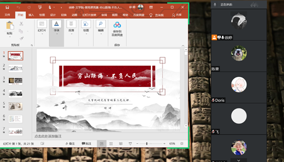支部书记以“山海”为线,分“漂洋过海”、“翻山越岭”、“百川归海”、“焕彩江山”四个篇章,带领大家回顾了我们党追求真理、革命奋斗的峥嵘岁月。她指出:“路曼曼其修远兮,实现‘人民幸福、国家富强、民族复兴’的中国梦尚在征途。”并对大家提出期望:“希望我们每位毕业党员能以‘志合者,不以山海为远’自勉,将青春奉献到祖国和人民需要的地方,不忘初心,始终发挥旗帜作用,作无愧于时代,无愧于人民的‘共产党员’!”