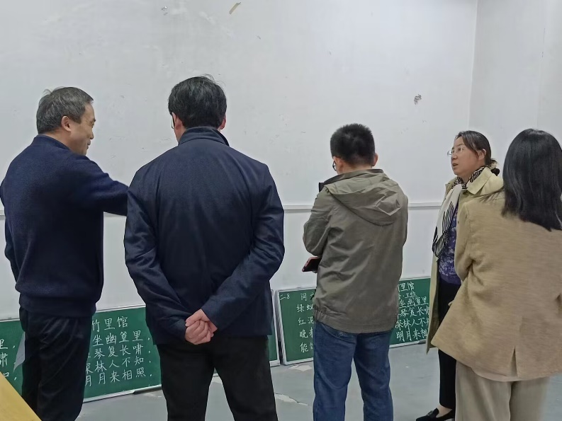 比赛宣布开始后,伴随着悠扬的乐声,参赛选手们纷纷在黑板上进行粉笔字书写。比赛过程进行井然有序,选手们全神贯注用心书写粉笔字,评委老师们也纷纷进入赛区对每位选手的粉笔字书写进行巡视。黑板上响起粉笔“唰唰”的声音,老师们也放轻脚步靠近选手们观察他们的书写过程。时而彼此进行交流,时而微笑鼓励同学们,呈现出一片轻松的氛围。20分钟的比赛时间很快结束,最终我们迎来了激动人心的评审环节。