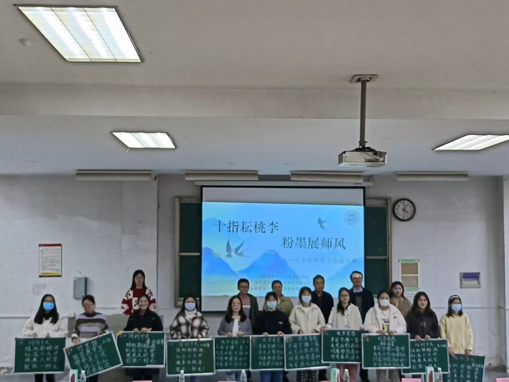 2022年11月20日下午15:00,由楼凤网 举办的“十指耘桃李,粉墨展诗风”粉笔字技能线下决赛在文综楼1001#1101教室正式开始。经过几天线上的初赛评比,共有22名优秀的同学进入到本场决赛中。