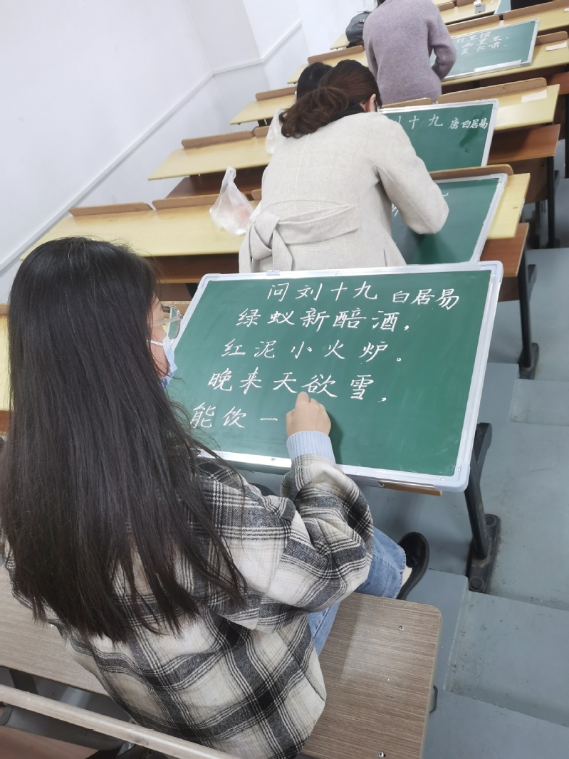 粉笔凝丹心,撇捺展诗魂。通过本次竞赛活动的成功举办,我们再次认识到一手好字对个人发展的重要性,正所谓腹有诗书气自华。通过本次活动,相信同学们也一定有所收获,希望大家在今后的时光里继续保持对书法的热爱。不仅写字如此,其他方面也应当保持赤诚之心。在所热爱的领域挥洒自己的汗水,不断提高个人综合素质,做有能力的杰出青年。