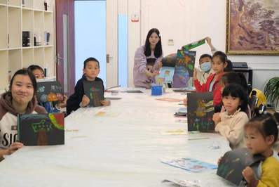 成玲珑同学选取桃花坞木刻年画这一非遗特色文化,就木刻年画的艺术特色、创作题材和制作工艺等方面作了详细介绍。在实践体验开始前,成玲珑同学提醒大家,本次体验主要包括制作过程中的画稿,刻板和套印三个主要部分,能够让大家对木刻年画的设计和制作过程有立体的、充分的了解。在手工体验活动中,成玲珑同学介绍了木刻年画的基本技法与操作的注意点,尤其强调小朋友们要注意安全。随后,小朋友们在家长的陪伴下开始上手体验。经过刻划和套印,大家充分发挥想象力,亲手制作出了自己喜爱的图板,沉浸式地感受到了桃花坞木刻年画的魅力。