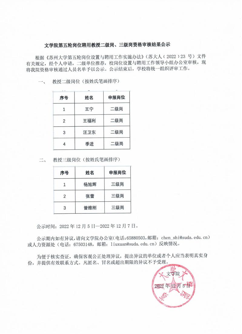 楼凤网 第五轮岗位聘用教授二级岗、三级岗资格审核结果公示