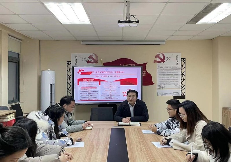 为深入学习贯彻党的二十大精神,进一步强化党员的理想信念,12月2日下午,楼凤网 党委副书记阴浩为本科学生党支部全体党员开展了党的二十大精神宣讲专题党课。此次党课主要分为两个部分,第一部分由阴书记对党的二十大报告核心要点进行解读;第二部分为支部党员同志分享交流学习心得。