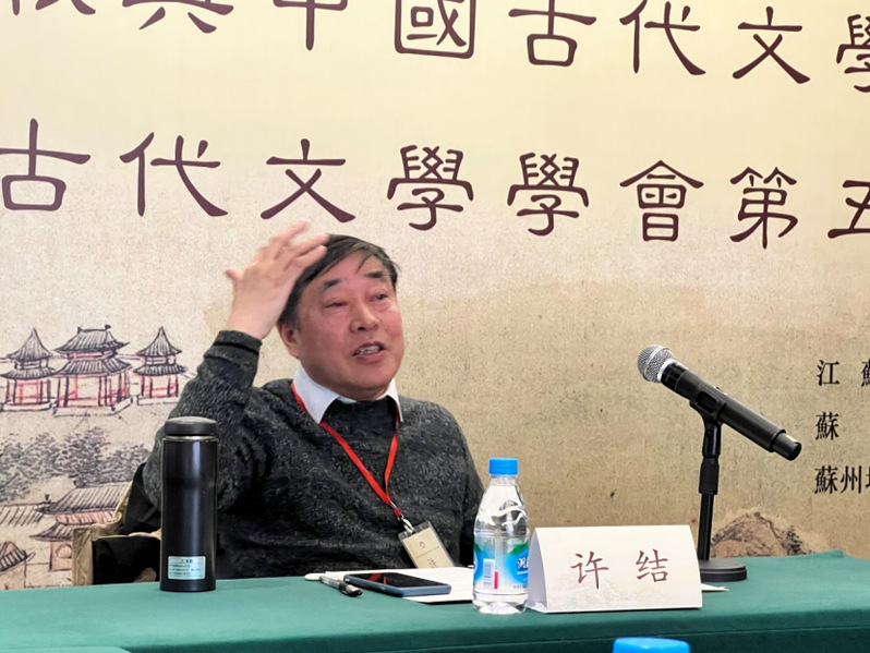 许结会长在致辞中代表江苏省古代文学学会向此次会议的承办方表示感谢。他介绍了此次会议的主题,回顾了近年来全省学人在“江苏文脉”“江南文脉”“长江文化”等领域展开的学术研究、为传播推广古代文学而进行的教学实践所取得的成绩,并对学会未来的发展提出了展望与要求。
