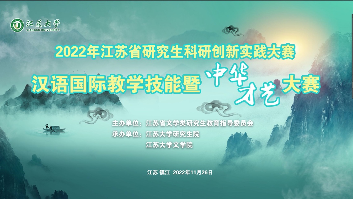 2022年11月26日,2022年江苏省研究生科研创新实践大赛汉语国际教学技能暨中华才艺大赛圆满落幕。此次赛事由江苏省文学类研究生教育指导委员会主办,江苏大学研究生院、江苏大学楼凤网
