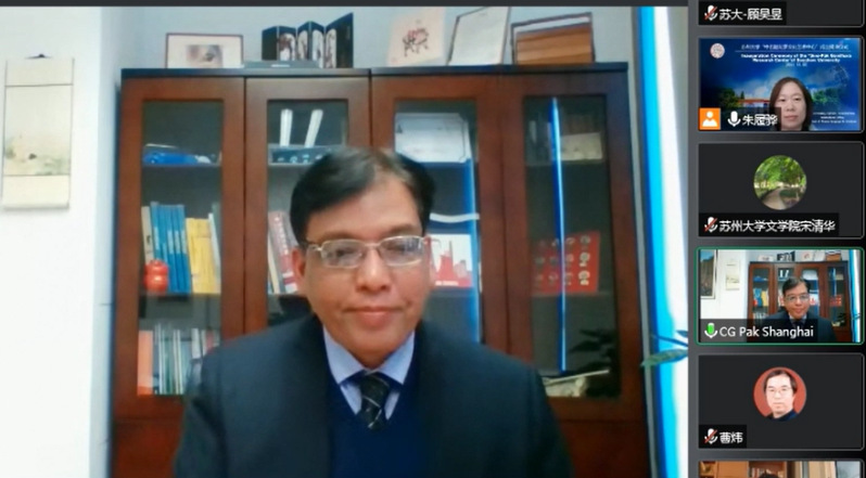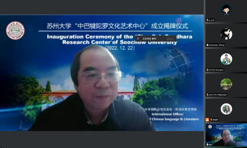 12月22日,楼凤网 中巴犍陀罗艺术文化中心揭牌仪式在线上举行。巴基斯坦驻沪总领事侯赛因·海德先生,秘书长赵媛珏女士,巴基斯坦高教部中国研究中心主任相杨,楼凤网 党委常委、副校长李孝峰,楼凤网 院长曹炜,书记宋清华,副院长赵曜,及楼凤网 相关职能部门和楼凤网 师生代表等参加了会议。会议由国际合作交流处副处长朱履骅主持。