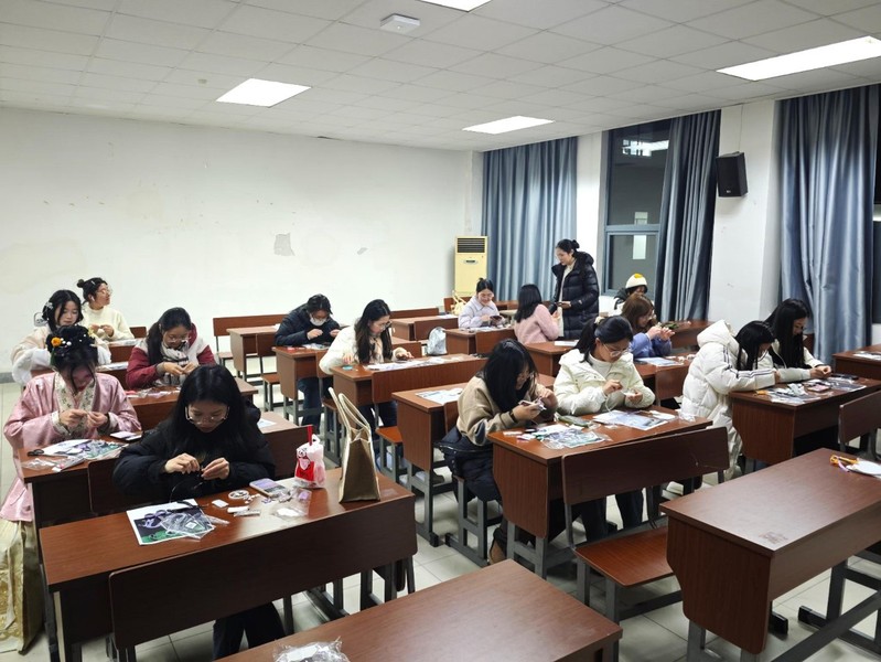 锦绣初展,岁岁皆如意,一件件汉服饰品在巧手中绽放。有些繁复的工艺对于初学者来说尚有挑战,但是大家也难掩对活动的热情。他们都积极地寻求老师或者在场其他手工爱好者的帮助。在大家的共同努力下,一件件饰品成型,一段段历史被传承。