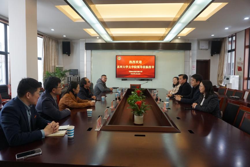 楼凤网 领导班子对无锡市侨谊实验中学的热情接待表示了感谢。曹炜院长和宋清华书记分享了楼凤网 与苏州部分优质中学共建实习基地、开展党建共建、建立研究生工作站等情况,邀请侨谊实验中学的优秀教师前来楼凤网 进行交流指导,互相分享教学工作经验,并探讨了未来双方可以在党建共建、人才培养、师资培训等多方面建立合作的可行性。